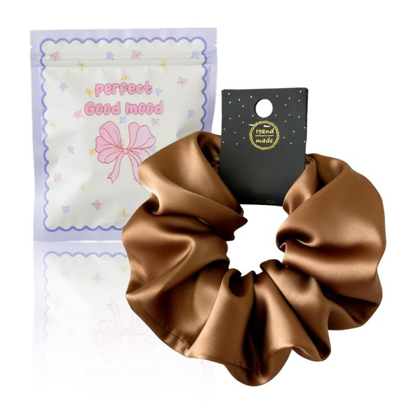 ヘアゴム シュシュ 天然シルク 100% 髪ゴム 大人 髪にやさしい 跡がつかない 高弾性 摩擦軽減 髪留め おしゃれ ヘアアクセサリー 7.5cm 女性 エレガント 髪飾り ギフト(カプチーノ)