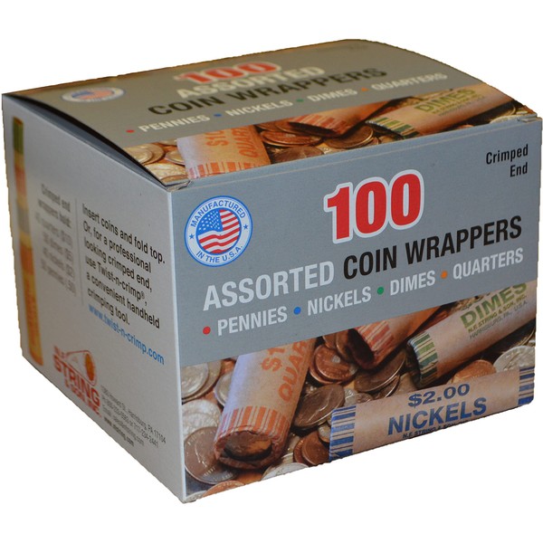 - Every box contains 100 Coin Wrappers: 25 Pennies, 25 Nickels, 25 Dimes, and 25 Quarters