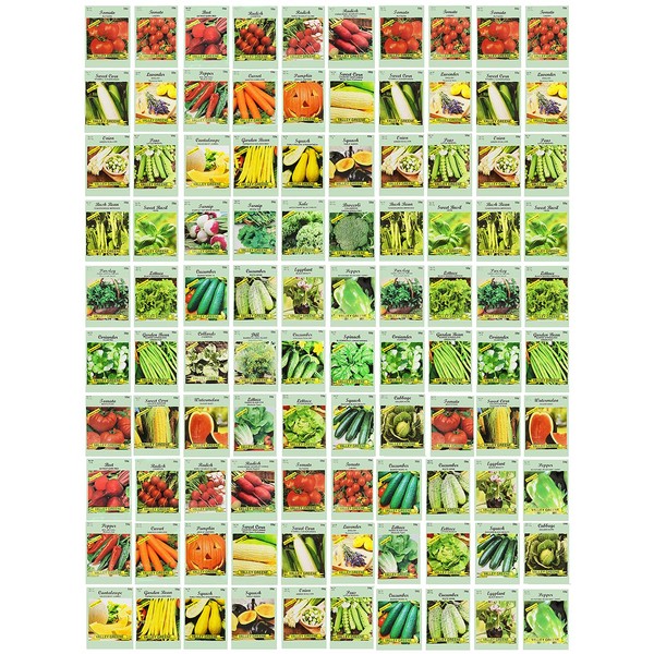 100 Assorted Heirloom Vegetable Seeds 100% Non-GMO (100, Deluxe Assorted Vegetable Seeds)