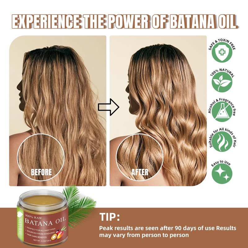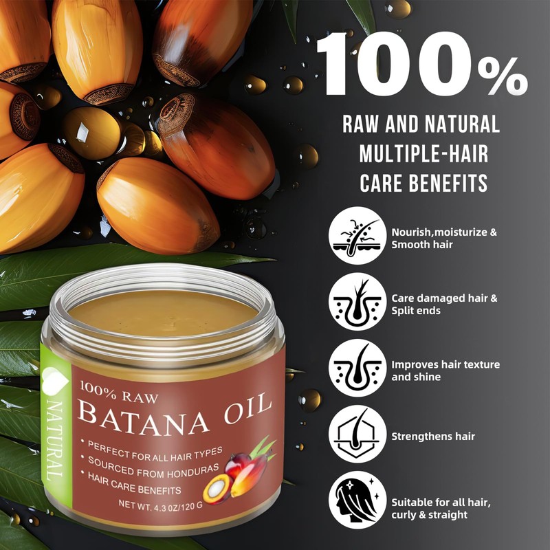 - Organic and Natural Ingredients:Batana natural hair growth oil is made from organic,natural ingredients and contains no chemicals or additives,making hair healthier and pollution-free,providing pure care for your hair.Natural hair growth oil makes your hair thicker and more vibrant,and keeps your hair healthy and moist.