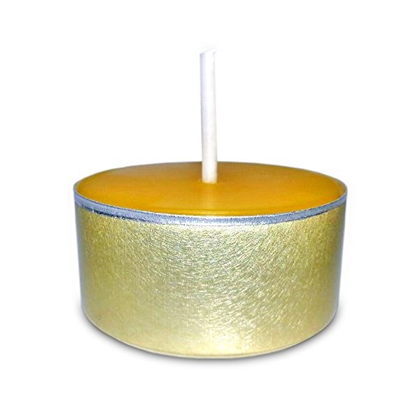 100% Beeswax Tea Lights in Gold Aluminium Sleeves Pack of 22