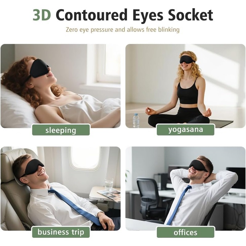 - 100% Blackout & 3D Contour Design: Features a flexible nose bridge that conforms to your face, blocking 100% of light for complete darkness. Fall asleep faster and enjoy deeper rest anytime, anywhere—perfect for travel, naps, or night sleep
