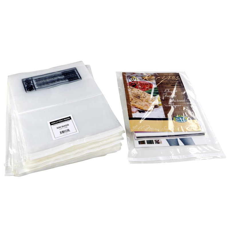 100 Clear Poly Bags - 11x14 - Strong Self Seal Strip with Suffocation Warning