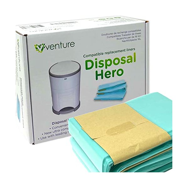 100% Compatible Nappy Bin Liner Refill 16L, 3-Pack Extra Super Saver Bonus, Get 33% More Disposal Hero Liner Than Original