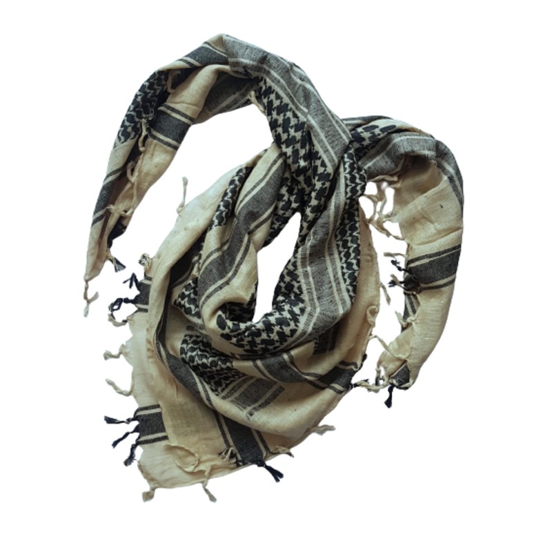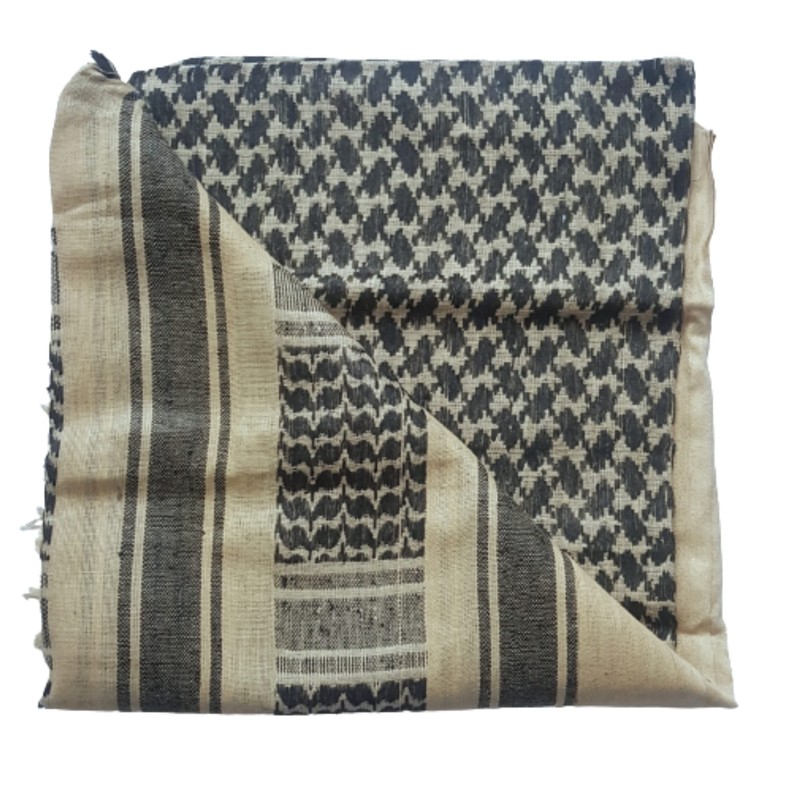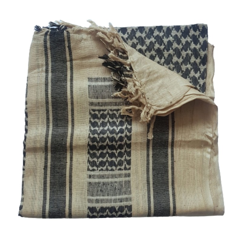 100% Cotton Beige Khaki Sand and Black Shemagh Scarf Arab Keffiyeh Military Desert Head Neck Wrap R.R.P £11.99