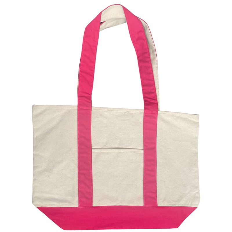 100% Cotton Heavy Duty Expandable two-tone gusseted Reusable Tote Bag & Front Pocket, Machine Washable Size 14 x 19 x 6 inch. (Pink)