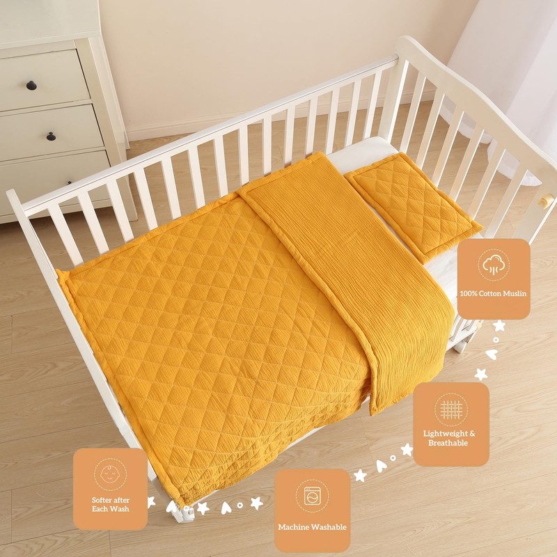 100% Cotton Muslin Baby Blanket for Boys Girls - Ultra-Soft Reversible Toddler Comforter, Lightweight Breathable All Season Down Alternative Toddler Crib Blanket (Yellow, 39 x 47in)