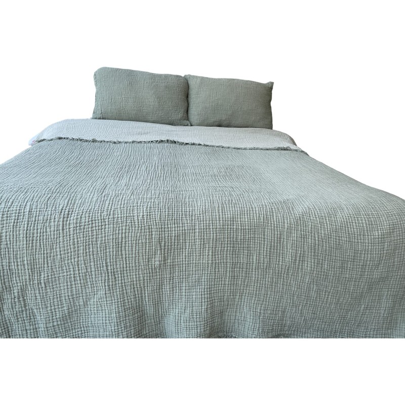 100% Cotton Muslin Throw Blanket, 4 Layers Bedspread, Soft Turkish Cotton Muslin Bed Cover, Reversible Coverlet, Green (Two Pillowcase 20x30)