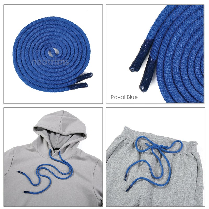 100% Cotton Round Hoodie Drawstring Cord with Tipped Ends Stoppers. 10mm Diameter Wide. Circular Rope 185cms Long. Transparent Locked End Tips,no Fraying. Neotrims. Royal Blue, 1PC