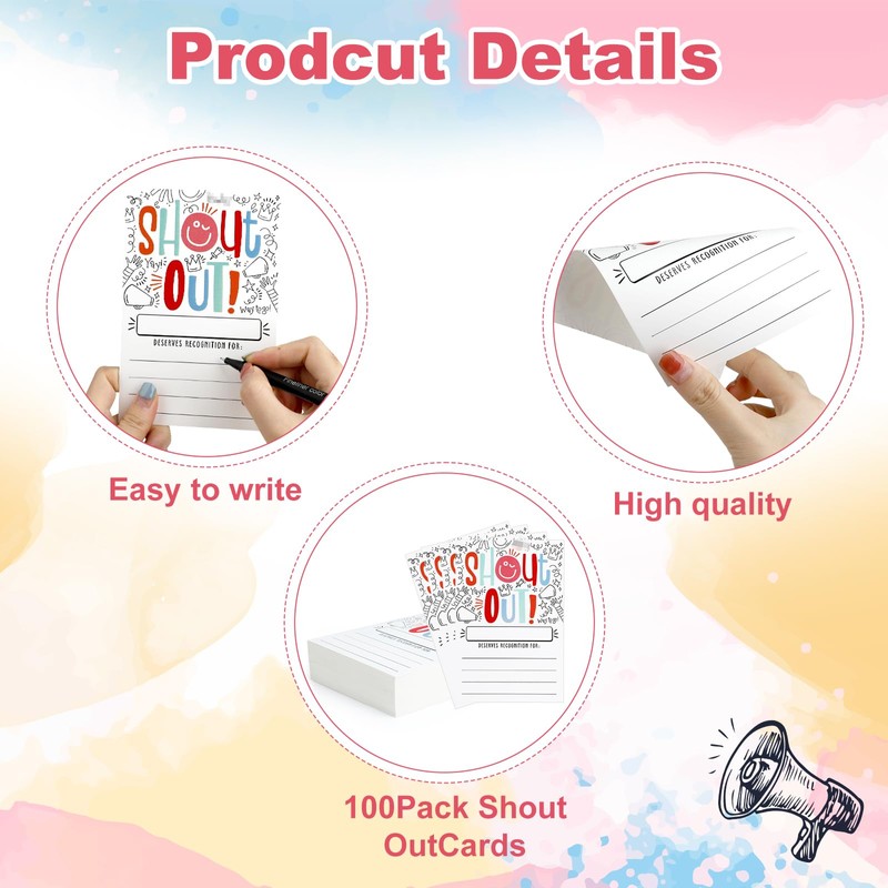 - 100 Greeting Cards: Made of high-quality thick cardboard, the cards have a smooth surface and bright colors. Placed on the table, they are perfect for expressing your gratitude and appreciation.