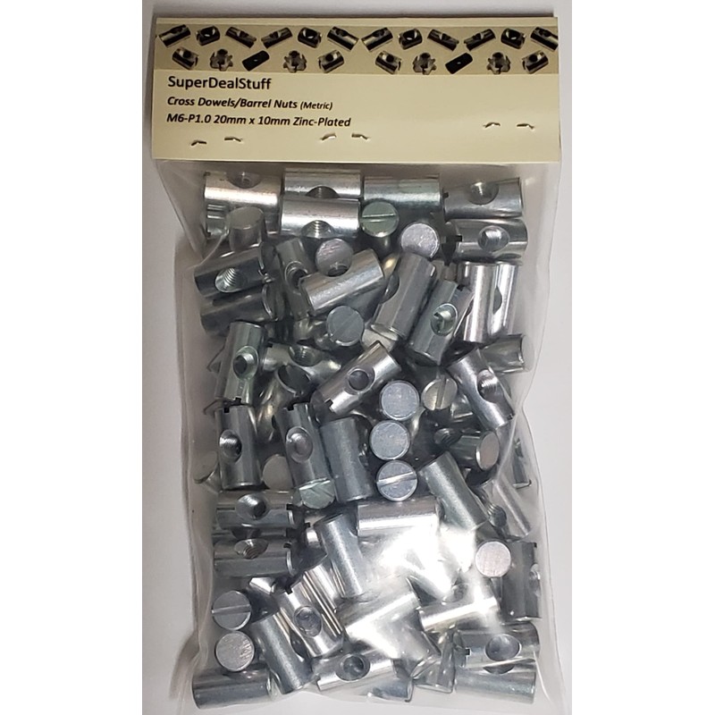 (100) Cross Dowels/Barrel Nuts - M6 P1.0 20mm X 10mm Zinc Center Hole CNC