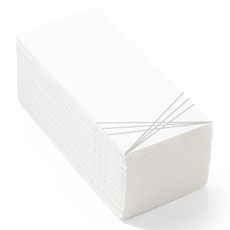 - Set of 100 soft and absorbent disposable paper towels linen feel for guest comfort. - Measuring 8.5 x 4 inches when folded and 12 x 17 inches when unfolded