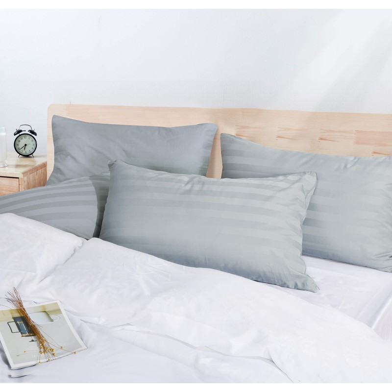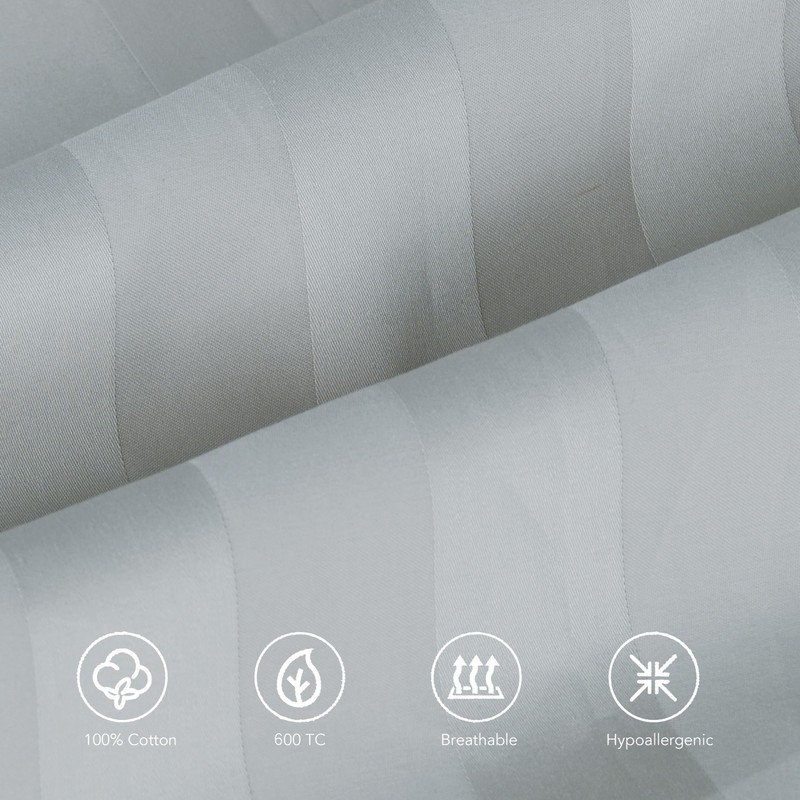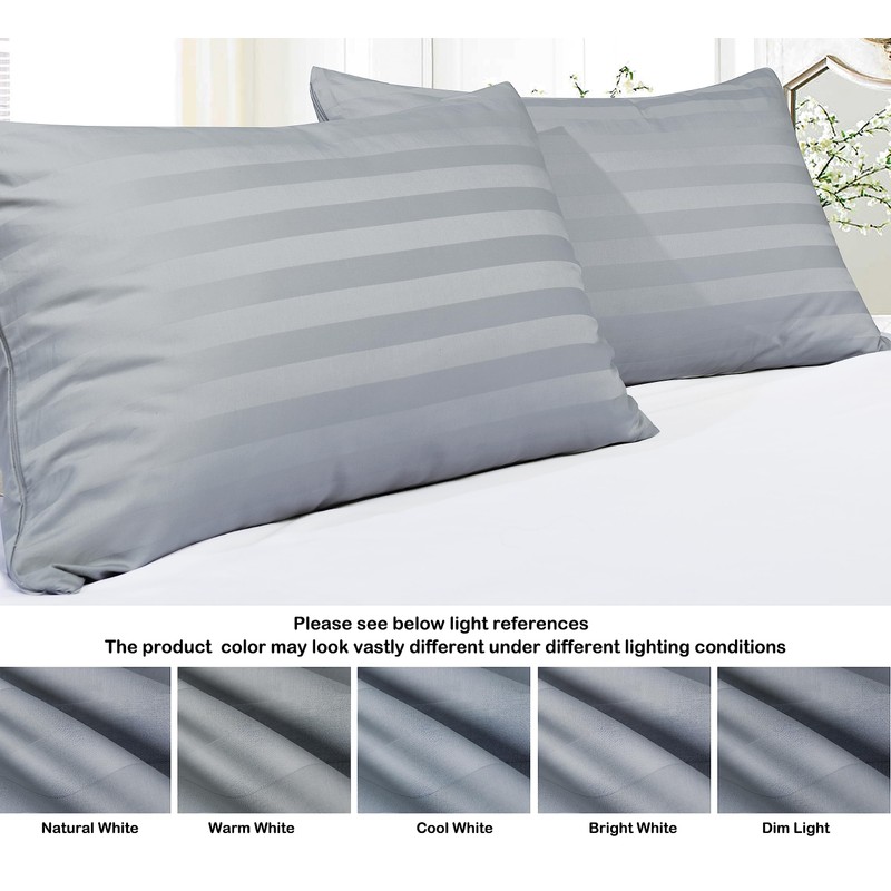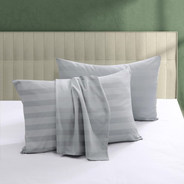 100% Egyptian Cotton Pillow Protectors Set of 2, 600 Thread Count Queen Size Bed Pillow Cases with Zipper, Sateen Weave Cooling Pillow Cases Quiet and Breathable Easy Care (2PCS, Striped Gray)