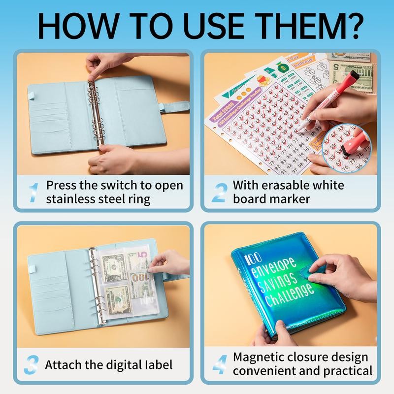 100 Envelope Money Saving Challenge Budget Binder with Cash Envelopes | Upgraded Finance Organizer for Savings Goals | Personal Finance & Budgeting Hack #MoneySavingChallenge #BudgetGoals #FinancialOrganizer:_1pc shining pink + 1pcs black