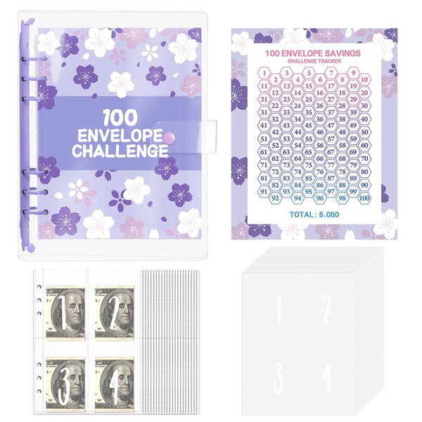 - 100 DAYS SAVINGS CHALLENGE: The back of the flip chart cover is printed with 100 hexagonal squares that are close together and labeled with numbers from 1-100. The transparent flip chart with four compartments allows you to better see your savings and record information, and each compartment is labeled with a number so you can keep an eye on the individual compartments.