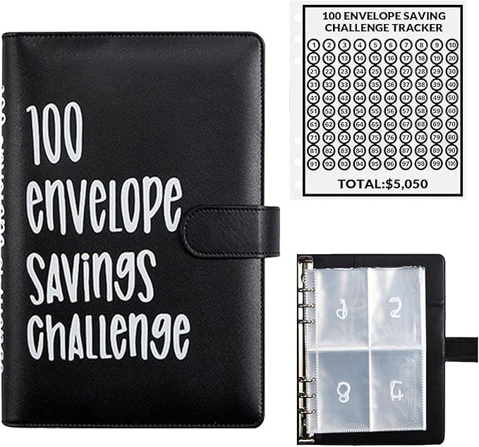 100 Envelope Saving Challenge Binder, 1 Count Budget Binder, Money Saving Challenge Book, Desk Office Accessories, Budget Planner Book calendar