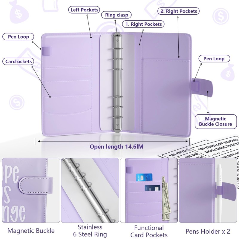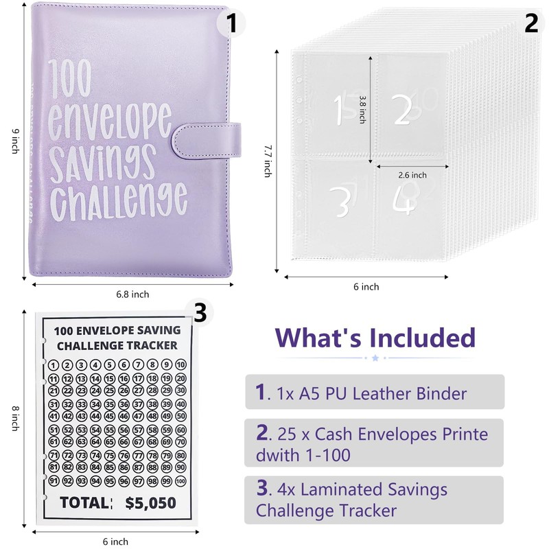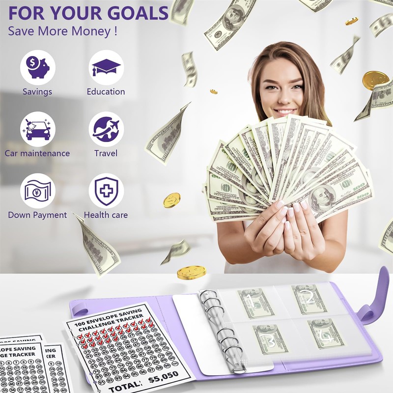 - 💰【100 Envelopes Money Saving Challenge】your go-to Money Saving Binder designed to make budgeting an enjoyable and engaging experience. Perfect for personal finance and family budgeting, this versatile binder is your key to financial success, helping you save money for the upcoming year or specific goals like a dream vacation, a new car, emergency funds, debt payoff, birthdays, and more!