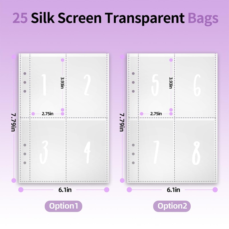 • PORTABLE AND CONVENIENT: The compact size of our cash binder allows you to carry it with you wherever you go. It features 25 transparent pages with a total of 100 card slots, providing ample space to store cash, coins, receipts, and other small items. Whether you're at home or on the move, this budget binder has got you covered.