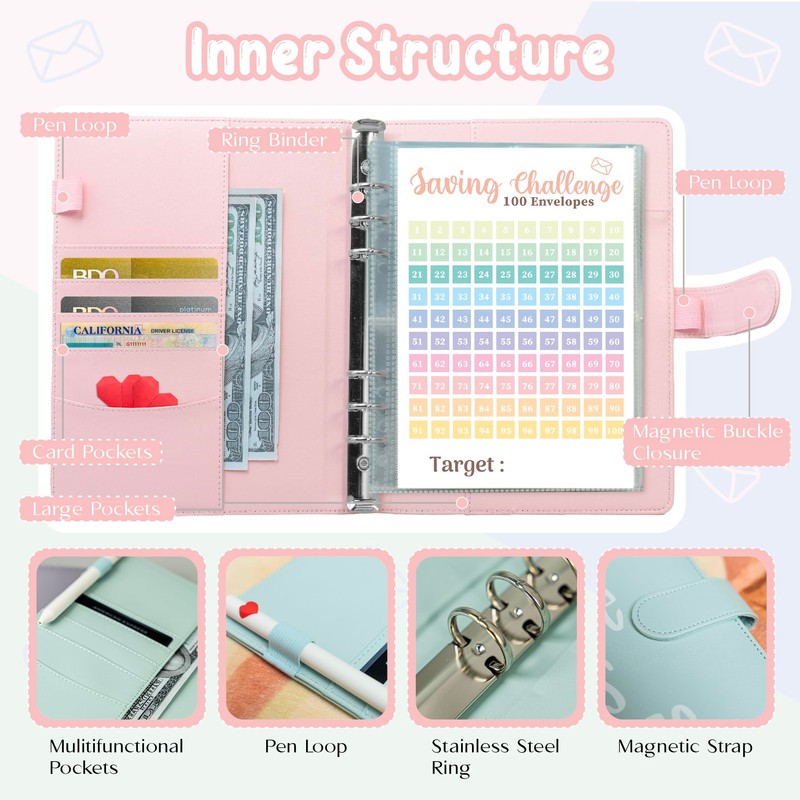 - 【100 Envelopes Challenge Binders 】 Dive into the 100 days money saving challenges and make daily savings a habit! Reach your financial milestones by filling up each envelope every day until you achieve your goal. It's an easy and fun way to stay committed to your savings plan.