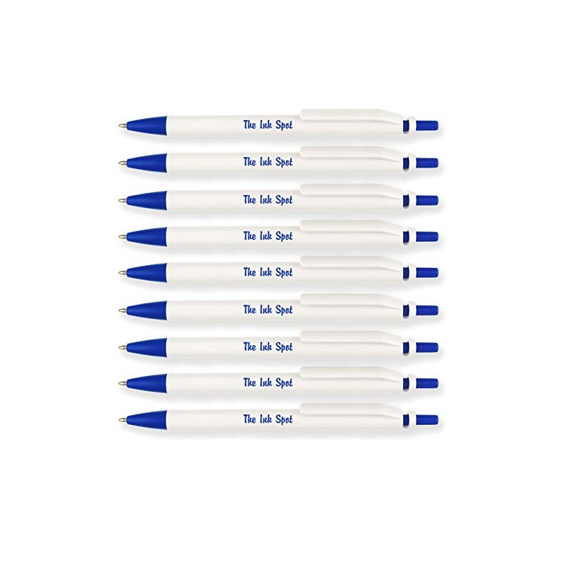 100 Excel Classic Click Personalized Custom Printed Retractable Pens - White Barrels with Blue Trim