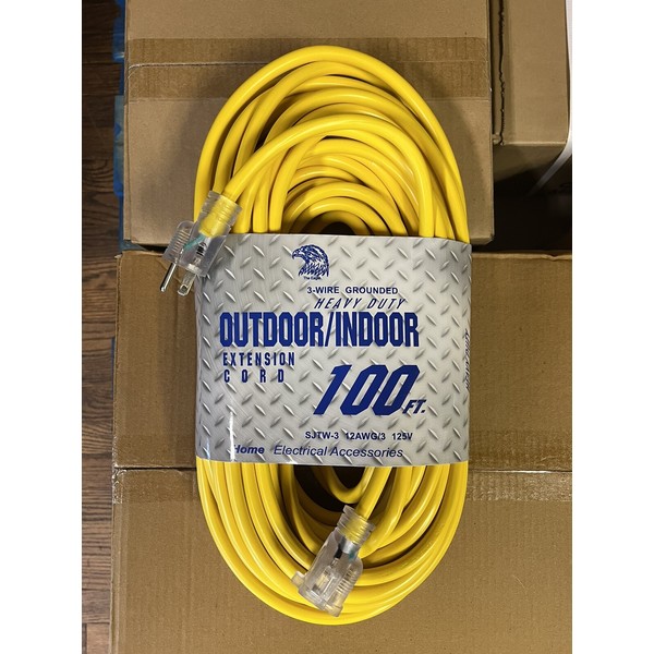 100 Ft Power Extension Cord Outdoor&Indoor HeavyDuty 12/3 Lighted Durability