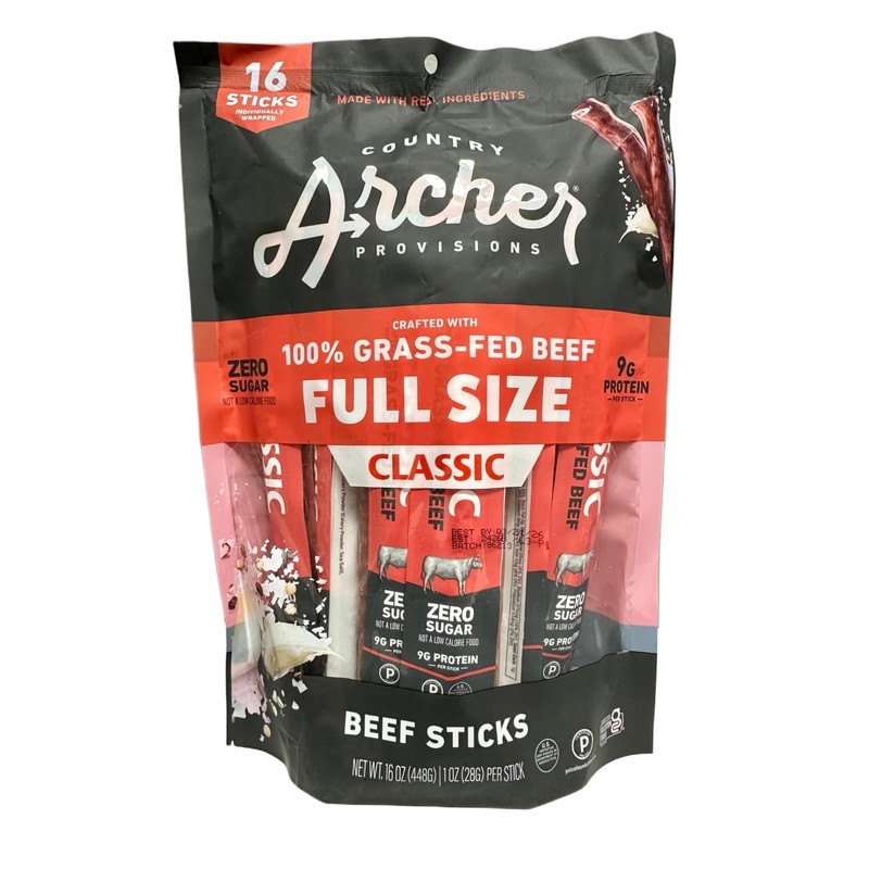 100% Grass-Fed Beef Sticks, CLASSIC, Full Size 1oz (16Pack)(Total 16oz) (Pack of 1)