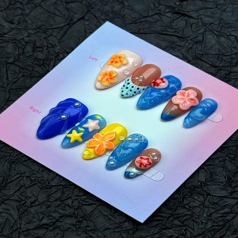 - Easy to Use:Choose the suitable luxury press on nails, polish the nail bed, paste the jelly glue/glue, press the fashion nail art in 30 seconds, and create the nail art that girls like. If the handmade acrylic nails size is not suitable, it can be polished to the size of the nail cap with a friction tool. They are easy to apply and remove. No special nail polish remover is required; only hot water is needed