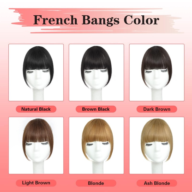 - ☘ Perfectly Shape Your Face: Wispy bangs & French bangs. The length and width are perfect for different face shapes. Wispy bangs with hair temples , it looks very cute and nifty.This hairstyle is thin and gives a refreshing feel and is the most popular see-through bangs hairpin. French bangs have enough thickness to cover your forehead without worrying about wispy. The hair temples on both sides can correct different facial contours. You can also trim it when it is too long or not needed.