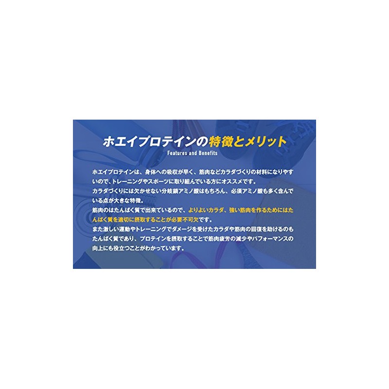 - 【プレーンタイプ】カロリー管理されている方や合成甘味料を気にされる方に特におすすめです。口当たりの良い豊かなミルク風味で飲みやすさを実現したホエイプロテイン。牛乳や豆乳との相性も抜群です。