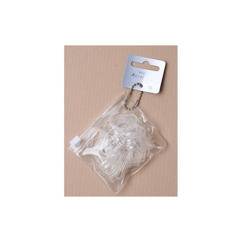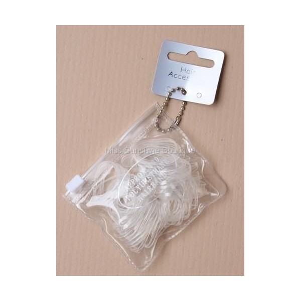 100 Large Clear Polyurethane Mini Elastics Hair Bands in a Zip Purse