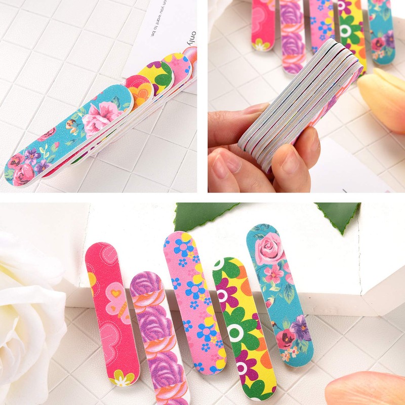 100 limas de uñas de doble cara para limas de uñas y pulidores de uñas para mujeres y niñas, 5 colores