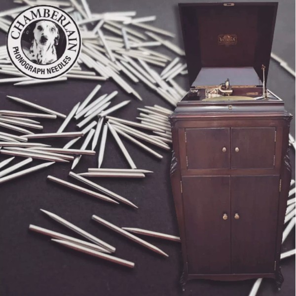 Since 1991, Chamberlain Needles are manufactured to the same specifications that The Victor Talking Machine Co. developed 100 years ago. Chamberlain needles are for use with early 1900’s hand-crank phonographs/gramophones that have a thumbscrew that holds the needle into the reproducer.These needles will work on many reproducers; Victor, HMV, Columbia, Sonora, Sonata, Brunswick, Universal, United, Paramount, Silvertone, Zonophone,Berliner, and Victor Orthophonic, as well as hundreds of other manufacturers of this time.