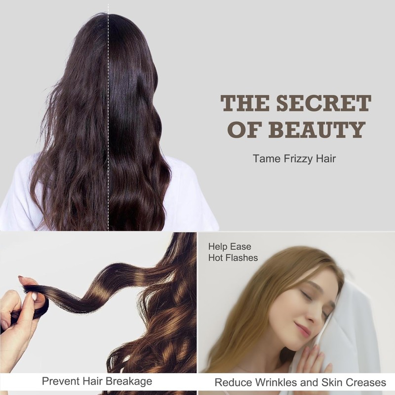 - Hair and Skin Friendly: The Mulberry Silk Pillowcase has been tested by beauty experts tohelp keep hair silky smooth by reducing hair frizz and tangles for curlyhair,It has also been proven to prevent wrinkles and reduce stretching andpulling on delicate facial skin and wrinkles and acne for sensitive skin. Saygoodbye to restless nights! Let's enjoy beauty sleep!