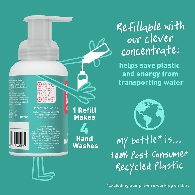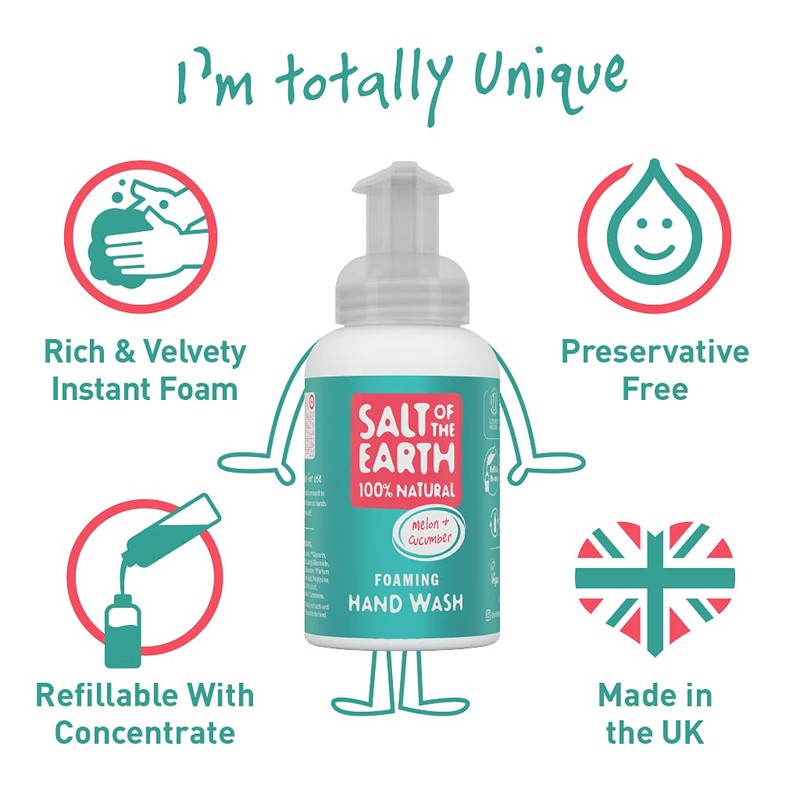 100% Natural Foaming Hand Wash by Salt Of the Earth, Melon & Cucumber - Vegan, Instant Foaming, Refillable, Leaping Bunny Approved, Made in The UK - 250 ml