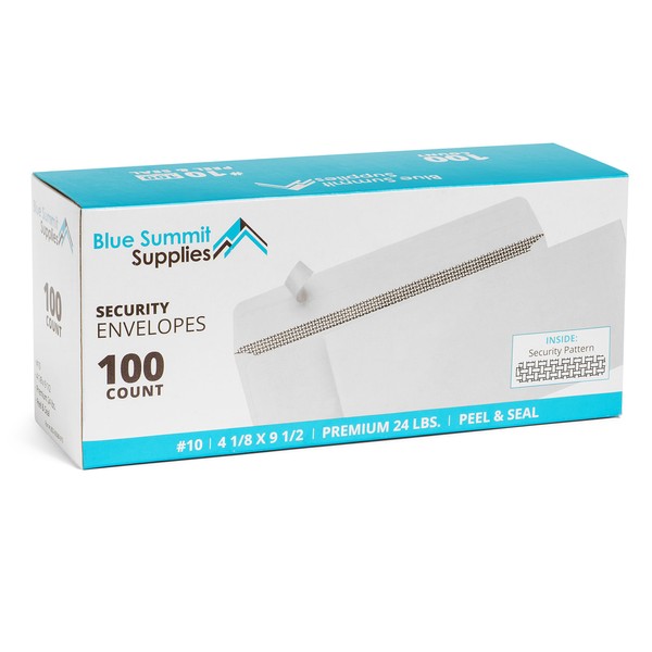 100 No. 10 Self Seal Security Envelopes - Designed for Secure Mailing - Security Tinted with Printer Friendly Design - Number 10 Size 4 1/8 x 9 ½ Inch (100 Pack)