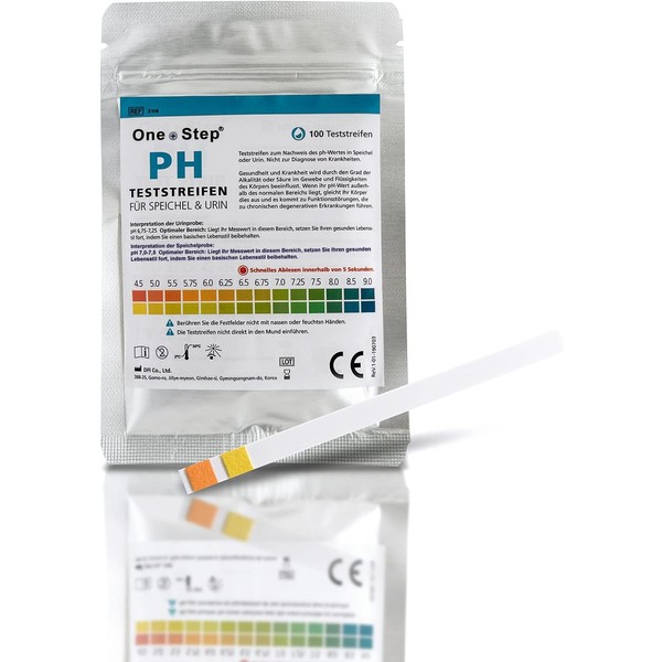 Measuring the acid-base balance in the urine and measuring the pH in the saliva do not correlate, meaning there is no direct relationship between the measurements of urine and saliva, but that each test records specific health factors. Individual measurements of urine pH can be misleading. To achieve meaningful results, you should measure regularly 3 to 6 days a day. It is ideal for taking urine measurements before and 1-2 hours after a meal. Measuring range from 4.5 to 9.0. With the one + step pH test, you can quickly and reliably determine values that are outside the normal values. No waiting for laboratory results. You will get a result within just 5 seconds. You can read the test results immediately after the test and save a lot of time.