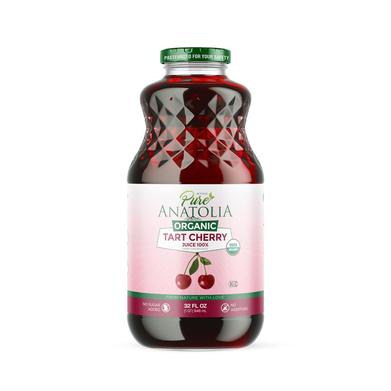 Organic Tart Cherry Juice by Pure Anatolia - USDA Organic, Gluten Free, Vegan, No Preservatives, Non GMO- Reusable 1 Glass Bottle of 32 fl oz.
