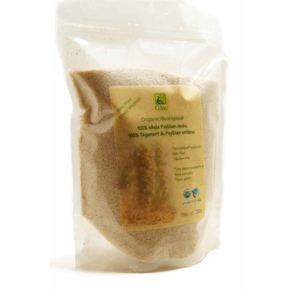 100% Organic Whole Psyllium Husk, 99-Percent, Washed 7 Times, 350 Grams
