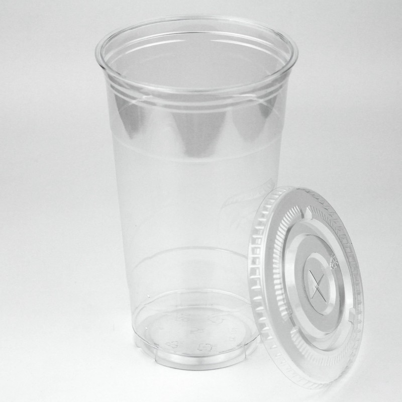 - 100 x 32 oz clear plastic cups and 100 x clear slotted flat lids. Lid slot fits all types of straws up to 1/2 inch in diameter.