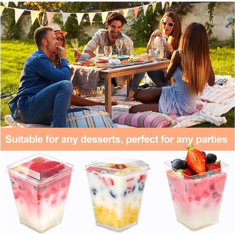 100 Pack 5oz Dessert Cups with Lids & Spoons Reusable Square Plastic Parfait ...