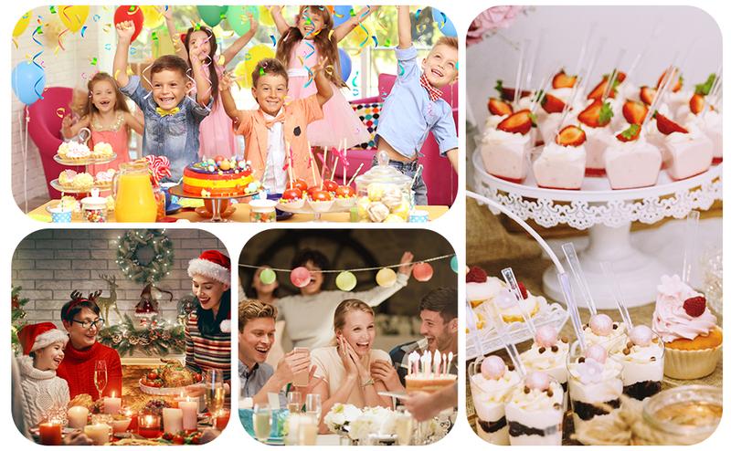 MULTI-PURPOSE DESSERT SHOOTER CUPS WITH SPOONS: These cute clear dessert cups can make any event look fancy and luxurious. You can serve, snacks, deserts, drinks and much more at different events like birthdays, house-warming and other gatherings