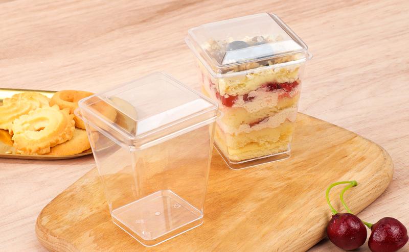 Made from crystal plastic our mini dessert cups with spoons and lids make an ideal party staple. The cup is made from pure PS plastic and the lid of the cups is curated from premium quality PET plastic