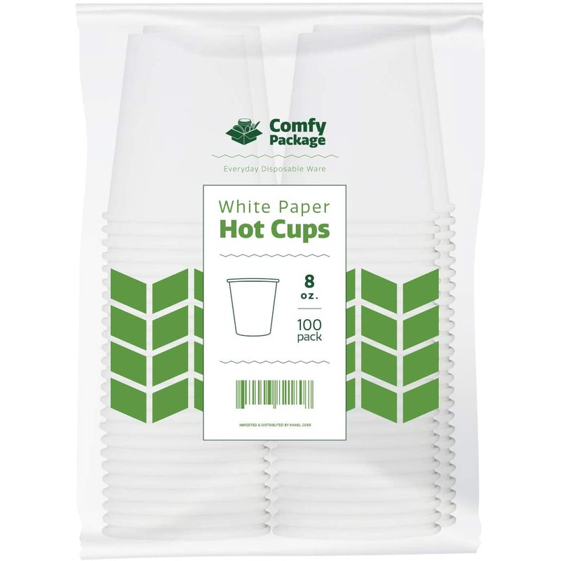[100 Pack] 8 oz. White Paper Hot Cups, Coffee Cups by Comfy Package