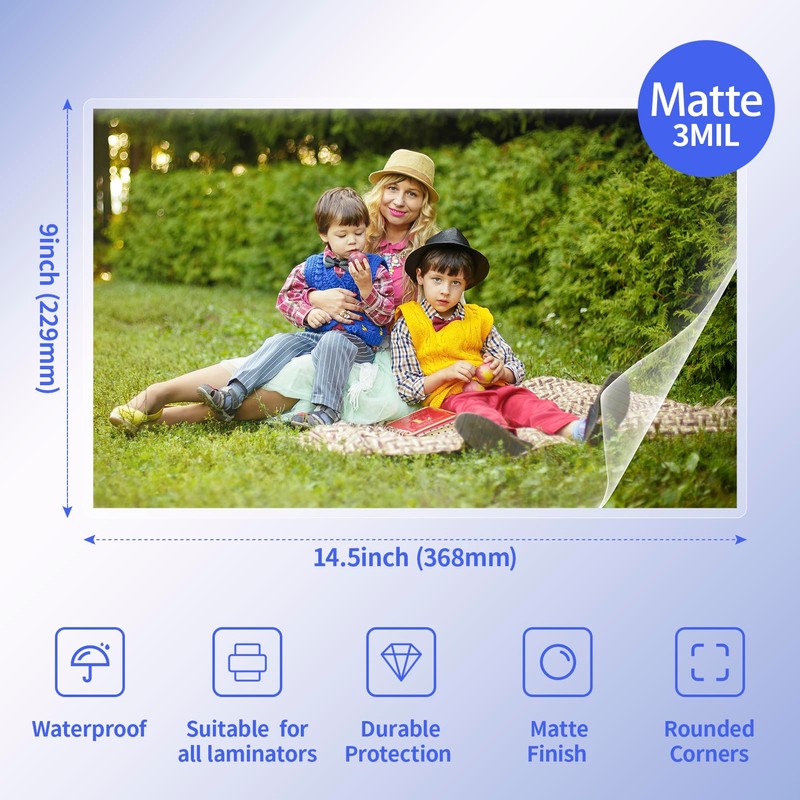 - Matte Finish & Rounded Corner : Crafted from premium supplies letter size laminating sheets feature a matte finish that provides an anti-glare appearance, fingerprint, and smudge-resistance; thermal laminating pouches are bubble-free, peel-proof, and resistant to color fading.