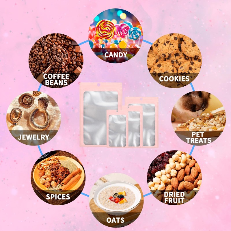 - Wide uses:The resealable bags for small business,Multiple colors for storage and hanging display of electronic parts, jewelry, lip gloss, eyelashes, stationery, samples and more. High quality food grade material storage bag for coffee beans, cookies, nuts, snacks, and more.