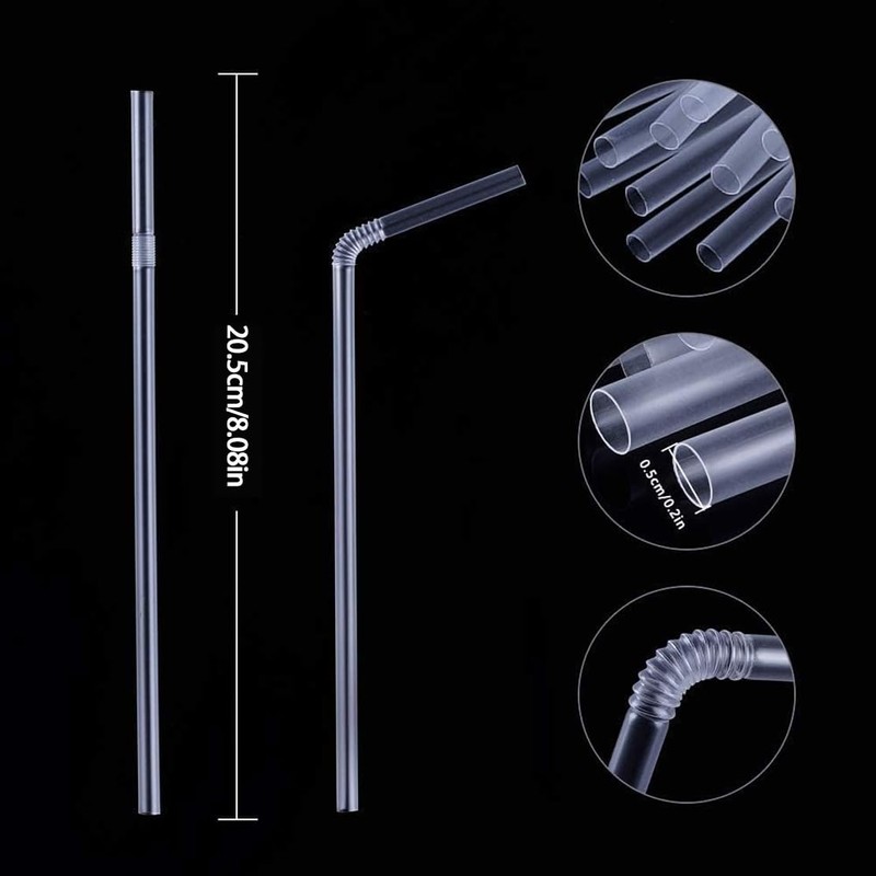 100-Pack Plastic Straws, Clear Flexible Drinking Straws, Disposable Non-Bendable Plastic Straws - 8" x 0.2"-Clear (100 Bend Straw)