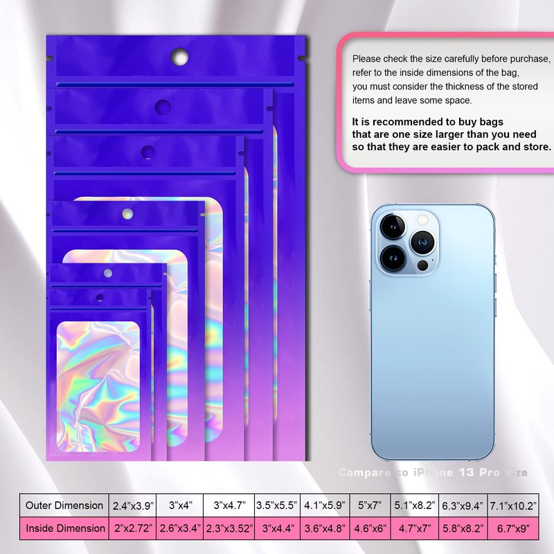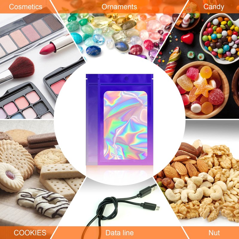 - MULTI-USE: This holographic resealable bag is suitable for small businesses, lip gloss packaging,mylar bags for food storage, electronics jewelry packaging.