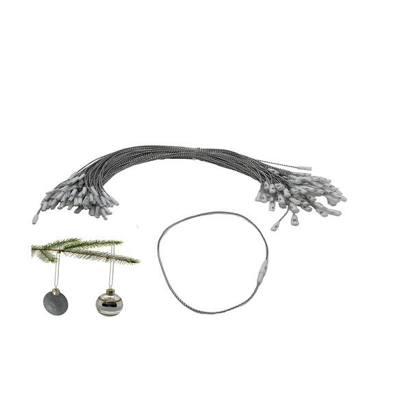 100 Pack Silver Metal Christmas Ornament Precut String Hangers with Snap Fastener (Nomad Brand)