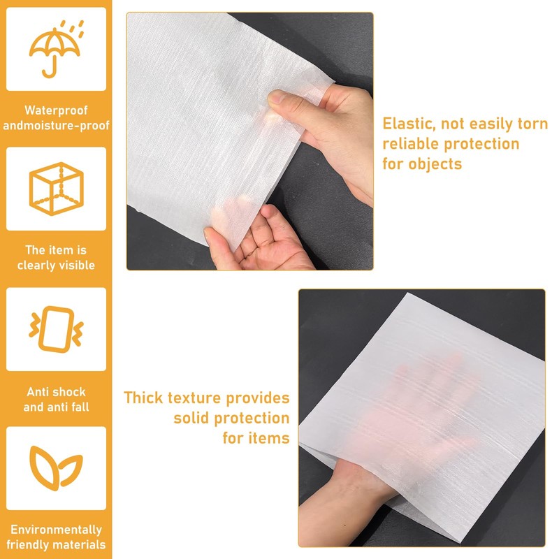 - Moisture and shock resistance: This cushioning foam wrap bag has strong moisture and shock resistance, reducing the damage rate of items during transportation and handling, and effectively preventing moisture and mold from affecting the products. It is suitable for various warehousing and logistics environments, ensuring stable product quality.