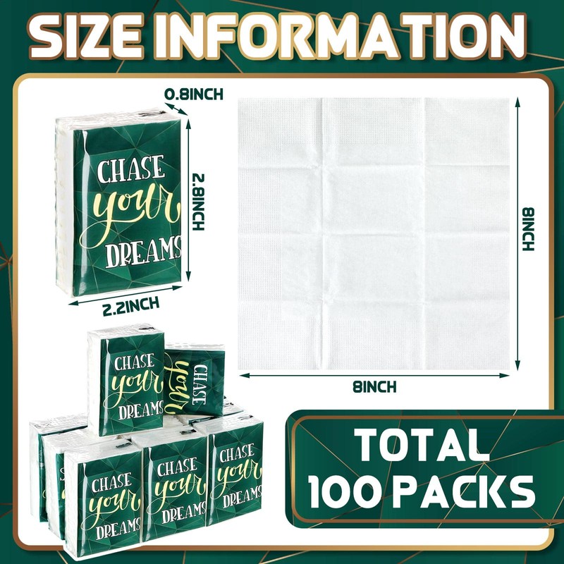100 Packs Pocket Tissues Facial Tissues Wallet Size Travel Tissues Bulk Inspirational Tissues Packs Individual 3 Ply Small Mini Tissues Packs for Graduation Travelling Wedding Holiday (Cool Style)